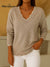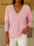 Women's Solid Color V-Neck Long Sleeve Casual Loose Knit Top