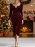 Women's Solid Color V-neck Long Sleeve Casual Pleated Loose Velvet Dress