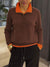 Women's Solid Color V-Neck Long Sleeve Double-Layer Collar Contrast Stitching Casual Loose Knit Top