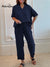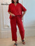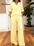 Women's Solid Color V-neck Short-sleeve Casual Loose Cotton Linen Top And Elastic Waist Wide-leg Casual Pants Set