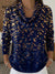 Retro Christmas Gradient Snowflake Art Pattern Polo Collar Shiny Loose Sweater Top