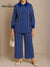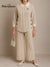 Women's Striped Print Peter Pan Collar Long-sleeved Casual Loose Top And High-waisted Striped Print Wide-leg Pants Suit