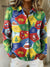 Women's Trendy Colorful Childlike Whimsical Christmas Crayon Pattern Print Cowl Neck Sweater