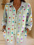 Women's Vertical Stripes With Colorful Flowers Print Casual Cotton Shirt
