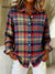 Women's Vintage Christmas Plaid Art Print Casual Cotton Shirt