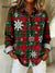 Women's Vintage Christmas Plaid Art Print Casual Cotton Shirt