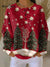 Women's Vintage Christmas Tree Art Print Casual Cotton Shirt