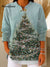 Women's Vintage Christmas Tree Art Print Casual Cotton Shirt
