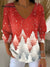 Christmas Tree Snowflakes Bow Art Pattern Art Polo Collar Shiny Loose Sweater Top