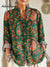 Women's Vintage Ethnic Geometric Paisley Totem Painting Art Print Casual Cotton And Linen Ruffle Shirt
