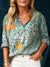 Women's Vintage Flower Art Print Casual Cotton And Linen Shirt