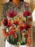 Women's Vintage Flower Art Print Casual Cotton Shirt