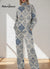 Women's Vintage Flower Art Print Casual Knitted Cotton Top Pants Suit