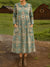 Women's Vintage Flower Art Print Cotton Lapel Button-Down Shirt Dress