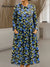 Women's Vintage Flower Art Print Cotton Lapel Button-Down Shirt Dress
