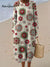 Women's Vintage Flower Art Print Crew Neck Knitted Sweater Dress