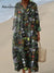Women's Vintage Flower Art Print V-neck Knitted Sweater Dress