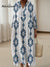 Women's Vintage Geometric Patterns Art Print V-neck Knitted Sweater Dress