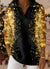 Retro Christmas Gradient Snowflake Art Pattern Polo Collar Shiny Loose Sweater Top