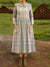 Women's Vintage Plaid Pattern Art Print Cotton Lapel Shirt Dress