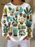 Women's Vintage Plants Art Print Casual Cotton Waffle Sweatshirt
