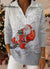 Retro Christmas Snowflake Art Pattern Polo Collar Shiny Loose Sweater Top