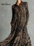 Zebra Print Maxi Dress ¨C Long Sleeve Flowy Polo Dress With Button Front And Brown Collar