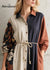 French Mixed Color Tie Waist Patchwork Cotton Shirt Dress Fall