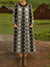 Geometric Vertical Square Decorative Pattern Women's Casual Peter Pan Collar Long Sleeve Dress