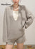 Light Grey Knit Cozy Two Pieces Set Deep-V Neck Fall