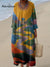 Painting Art Garden Landscape Decorative Patterns Women's Casual V-collar Long Sleeve Dress