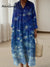 Retro Gradient Blue Snowflakes Print Knitted V-neck Dress