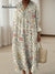 Retro Paisley Pattern Print Knitted V-neck Dress