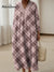 Retro Pink Plaid Art Print Knitted V-neck Dress