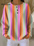 Women's Abstract Colorful Stripes Painting Art Print Casual Cotton Shirt