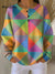 Women's Beautiful Colorful Rhombus Geometric Painting Art Print Casual Cotton Shirt