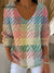 Women's Beautiful Multicolor Plaid Graphic Art Print Casual Pullover Sweater