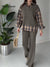 Women's Check Pattern Shirt Collar Knit Top Elastic Waist Casual Knit Pants Set