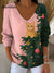 Women's Christmas Cat Pink Retro Holiday Pattern Art V-neck Solid Color Loose Shiny Sweater