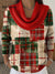 Women's Christmas Plaid Pattern Art Print Cowl Neck Sweater
