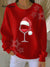 Women's Christmas Red Wine Glass Print Casual Sweatshirt