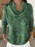 Women's Christmas Tree Pattern Art Print Casual Cowl Neck Sweater