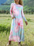 Women's Crayon-Style Big Flowers Art Print Long-sleeved Dress