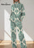 Women's Floral Pattern Art Print Casual Knitted Cotton Top Pants Suit