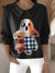 Women's Patchwork Ghost Halloween Fall Print Casual Peter Pan Collar 3/4 Sleeve Sweater