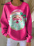 Women's Santa Oil Painting Design Print Knitted Crew Neck Long Sleeve Top