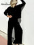 Women's Solid Color Round Neck Long Sleeve Casual Loose Knit Top and High-Waisted Knit Wide-Leg Pants Set