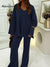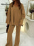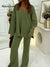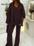 Women's Solid Color V-Neck Long-Sleeve Casual Loose Knit Top and Elastic Waist Casual Loose Knit Wide-Leg Pants Set