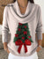 Women's Vintage Christmas Tree Art Print Cowl Neck Sweater