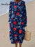 Women's Vintage Flower Art Print Crew Neck Knitted Sweater Dress